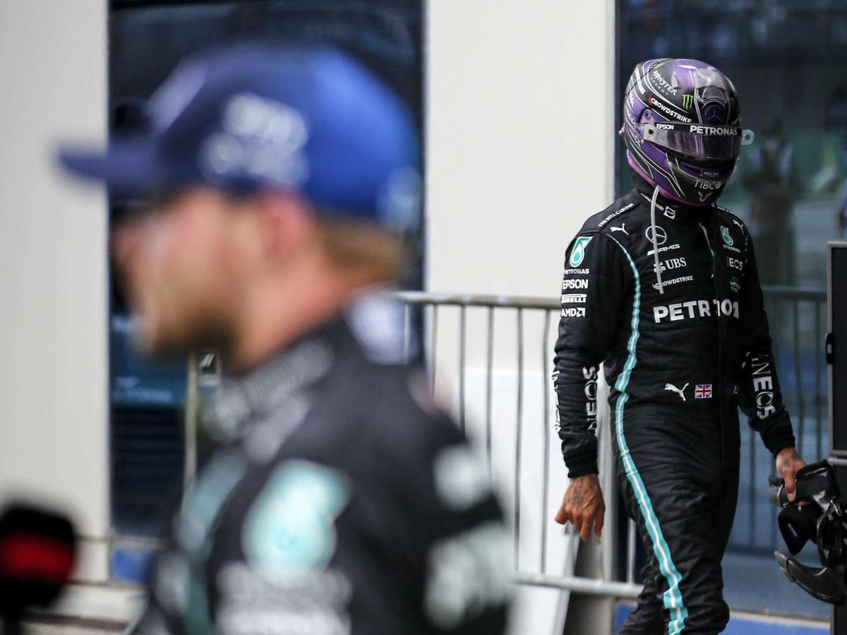 A Mercedes chamou Hamilton para os boxes, mas o inglês, inicialmente, preferiu permanecer na pista. Na volta 50 de um total de 58, o britânico enfim resolveu parar, mas aí já era tarde. Lewis sofreu com a granulação dos novos pneus intermediários, perdeu aderência na pista e viu a rápida aproximação de Pierre Gasly, que conseguiu diminuir a diferença para menos de 1s. No fim das contas, o heptacampeão se sustentou em quinto, mas viu Max Verstappen terminar a corrida em segundo e, desta forma, o holandês reassumiu a liderança do campeonato.