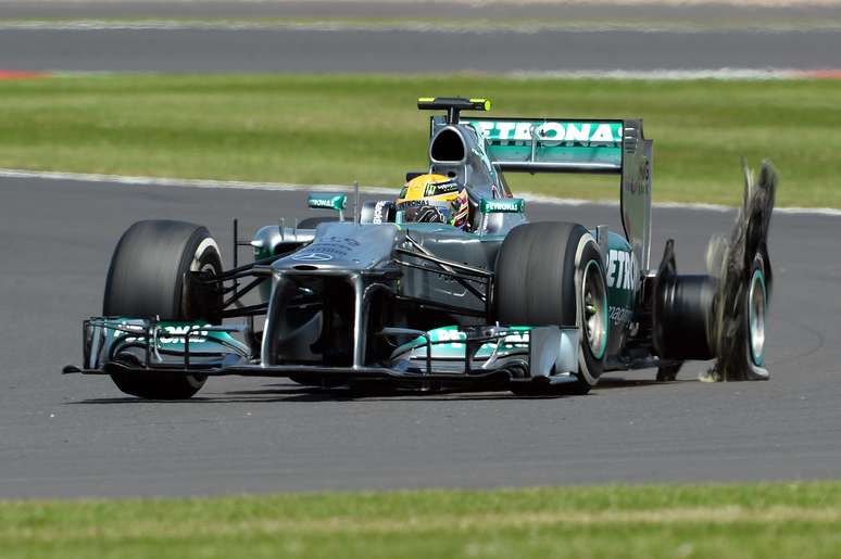 Então líder do Grande Prêmio da Inglaterra, disputado na manhã deste domingo, o britânico Lewis Hamilton (Mercedes) teve sua corrida prejudicada ao sofrer um deschapamento do pneu traseiro esquerdo logo na oitava volta. Insatisfeito, ele pediu providências à Pirelli, fornecedora dos compostos da categoria.