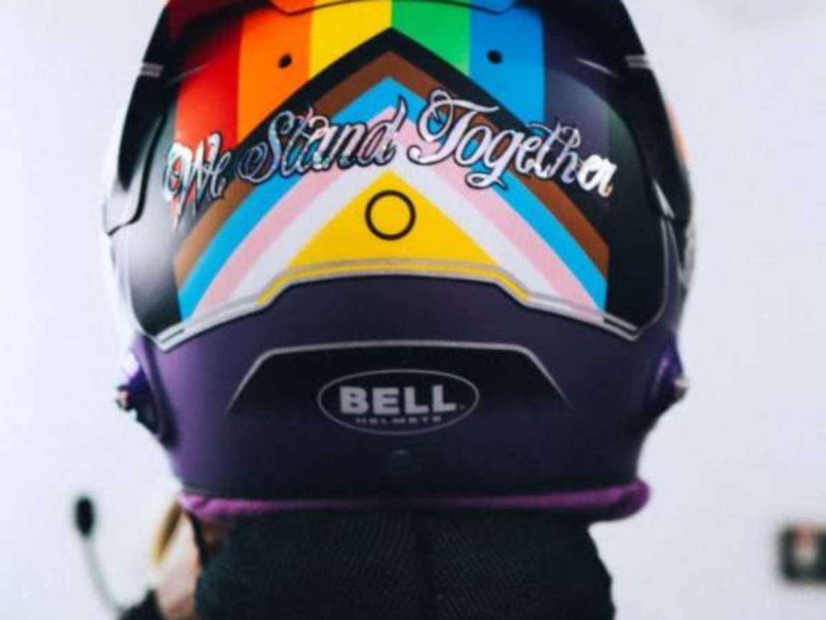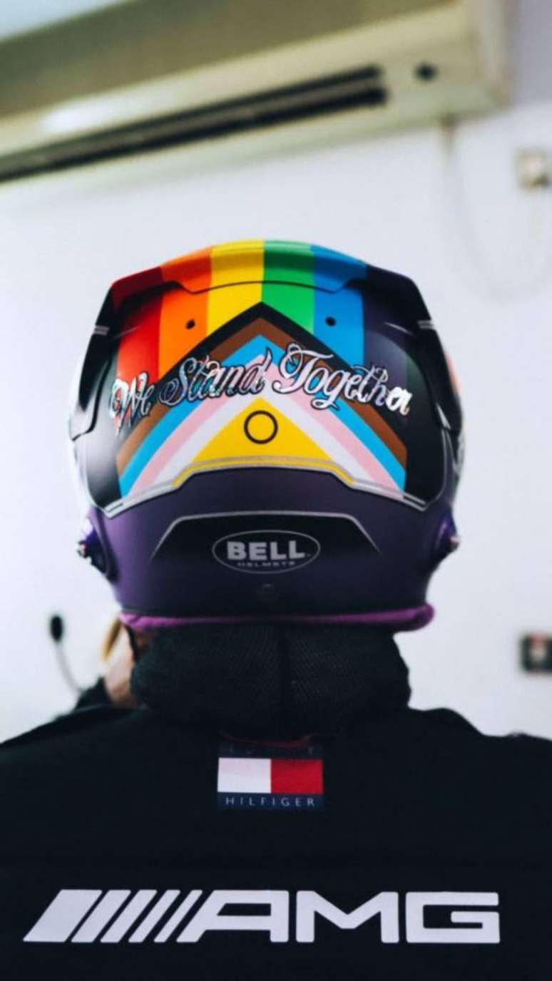 Nesta sexta-feira, o piloto Lewis Hamilton postou fotos usando um capacete pintado com as cores da bandeira LBGTQIA+ no segundo treino livre para o Grande Prêmio do Qatar de Fórmula 1.