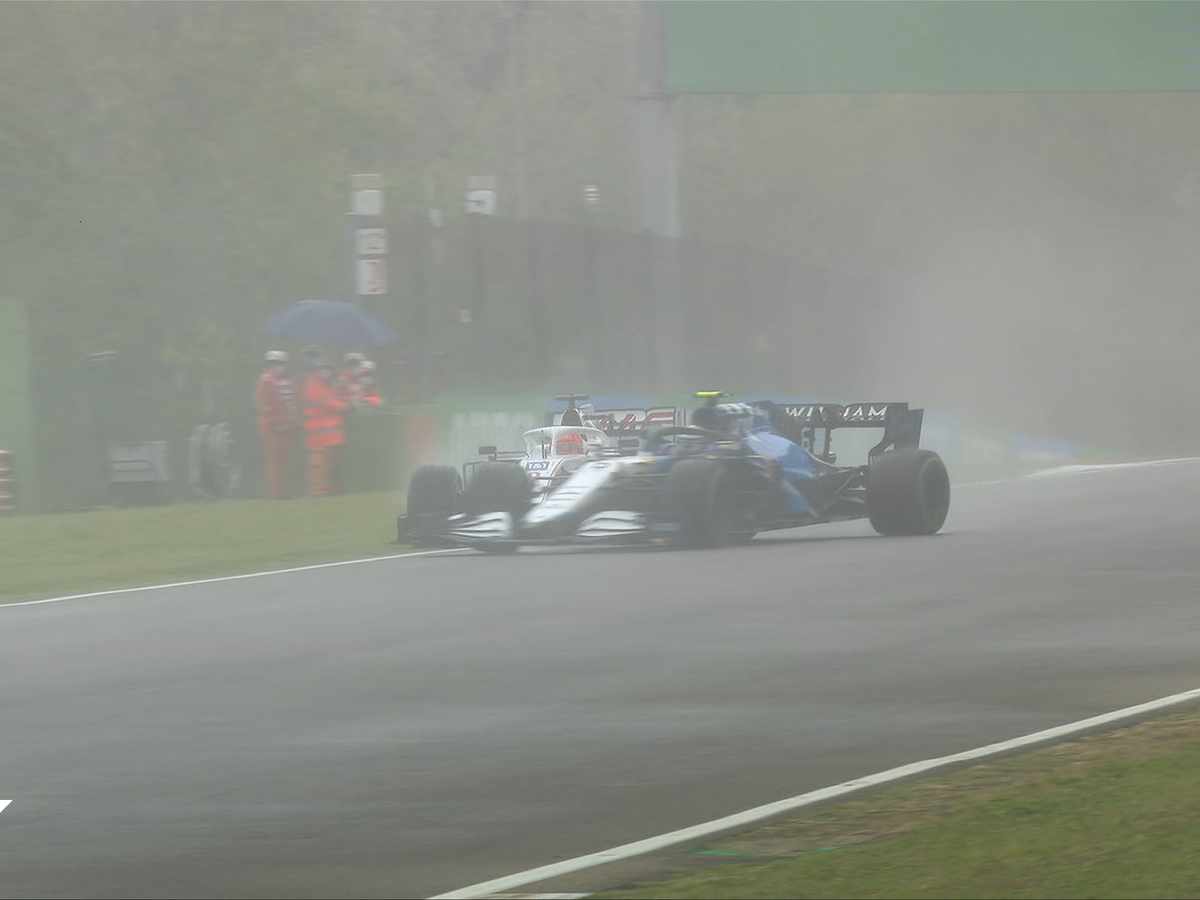 Latifi foi um dos dois pilotos a saírem da pista nos primeiros instantes, assim como Carlos Sainz, mas o canadense perdeu o carro. No retorno, ignorou totalmente a presença da Haas de Nikita Mazepin e fez contato. Aí, foi direto para o muro interno e bateu frontalmente.