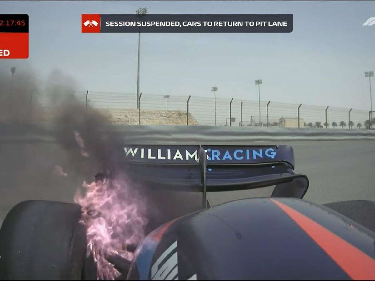 Latifi entrou na reta oposta do circuito de Sakhir já com a roda traseira pegando fogo e rodou na curva 12. O fiscal de pista correu para debelar as chamas com um extintor, mas levou um susto com uma pequena explosão que veio na sequência.