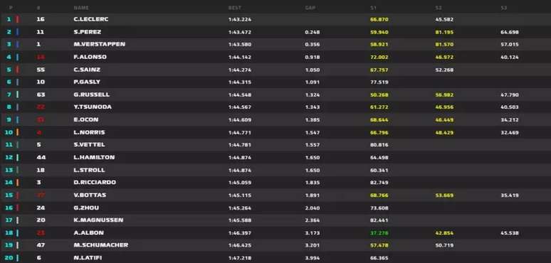 Em quinto lugar, ficou o espanhol Carlos Sainz, que chegou a liderar a sessão. O britânicou Lewis Hamilton, da Mercedes, terminou apenas na 12ª posição.