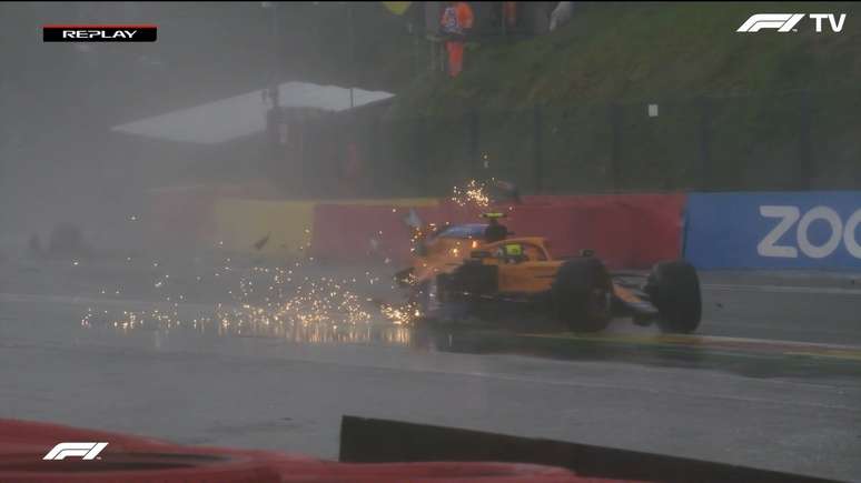 A chuva que cai em Spa-Francorchamps neste sábado (28) fez a primeira vítima no começo do Q3. Lando Norris fazia uma classificação impressionante, superando inclusive os postulantes ao título mundial, mas escapou da pista na subida da Eau Rouge na parte final da sessão e encheu o carro no muro. Apesar do susto, Norris sinalizou para a equipe que estava bem.