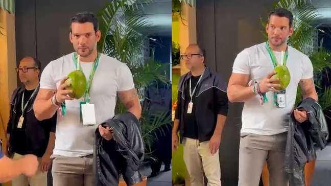 Enquanto aguarda a realização da classificação nesta tarde, o presidente da CBF aproveitou para saborear uma água de coco no meio do paddock. Os pilotos voltam à pista às 15h (horário de Brasília).