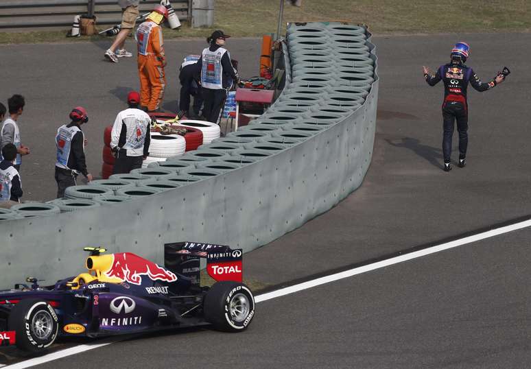 Punido por falta de combustível no treino classificatório e obrigado a largar da última posição no GP da China, Mark Webber voltou a ser penalizado na corrida deste domingo. O australiano foi considerado culpado pela batida em Jean-Éric Vergne, da Toro Rosso, e perdeu três posições no grid da próxima etapa, no Bahrein. E além das punições, o piloto da Red Bull ainda teve que ouvir ironias do rival.