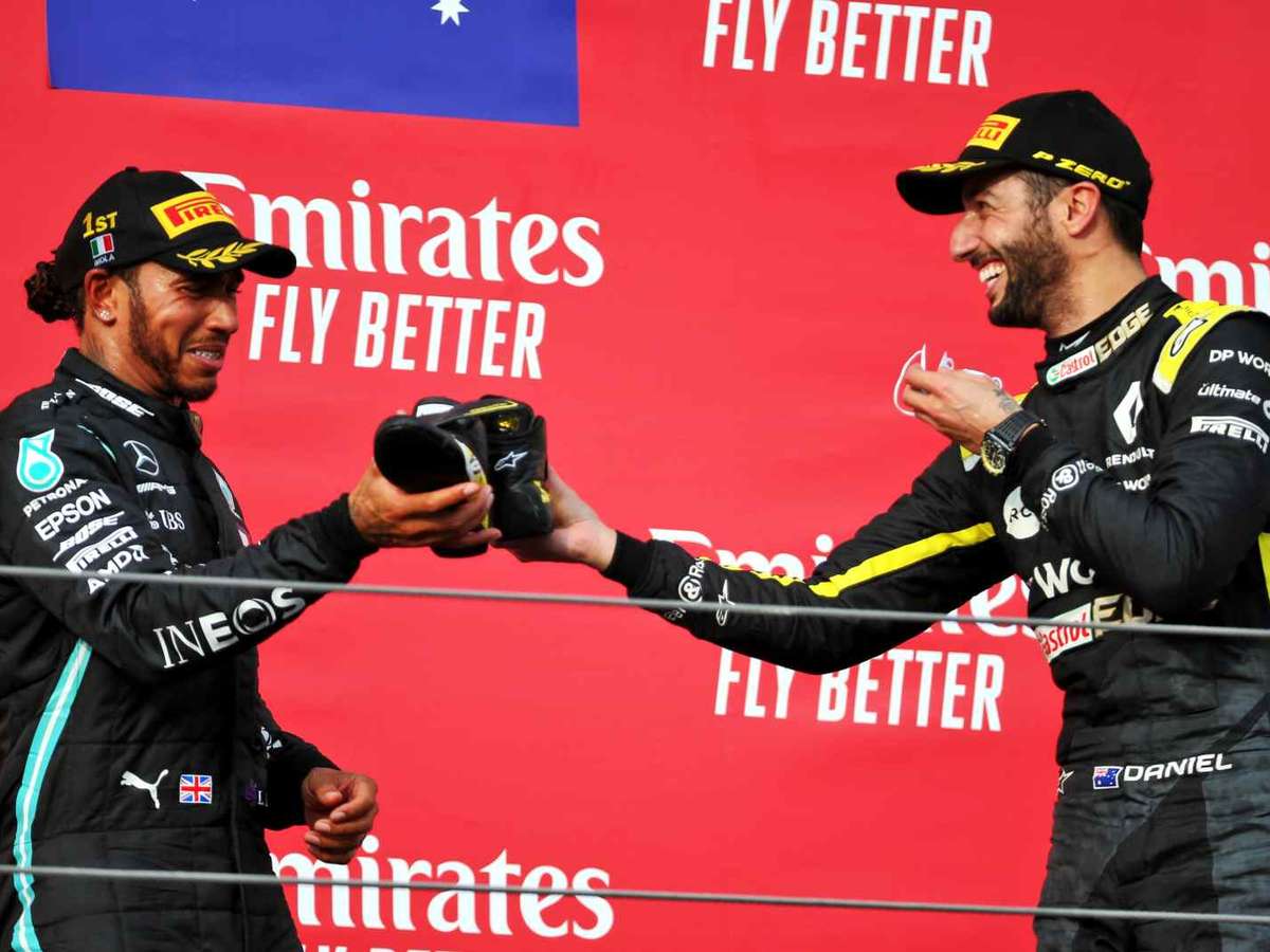 Já na reta final da corrida em Ímola, o safety-car foi acionado após Max Verstappen ter de abandonar por conta de um problema com o pneu. A Racing Point, então, chamou Pérez para colocar calçados novos, mas a Renault manteve Ricciardo na pista, com Charles Leclerc e Alex Albon se instalando atrás do australiano, posicionado na sequência das Mercedes de Lewis Hamilton e Valtteri Bottas.