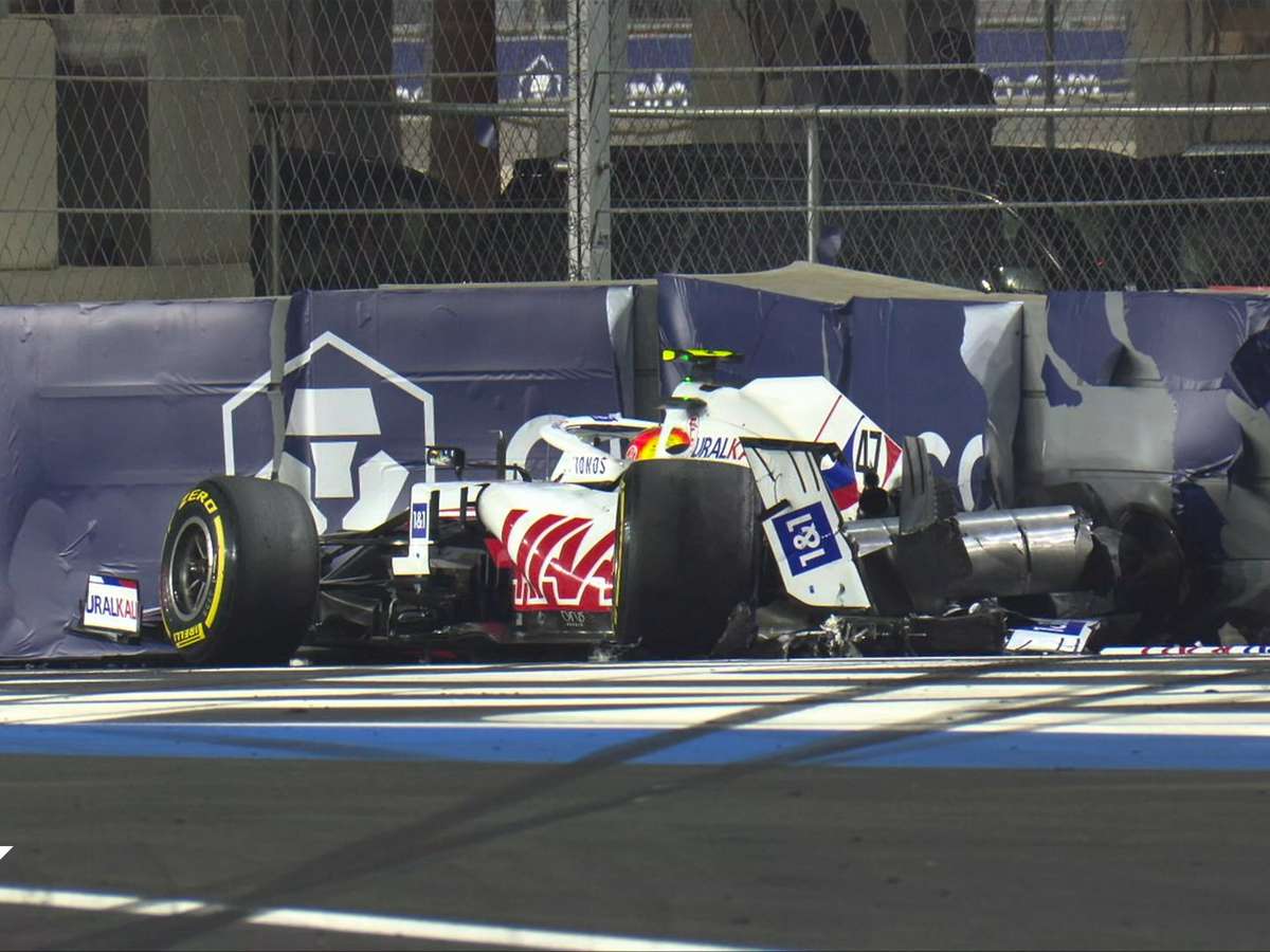 Schumacher arrebenta Haas no muro da curva 22 e força bandeira vermelha na Arábia