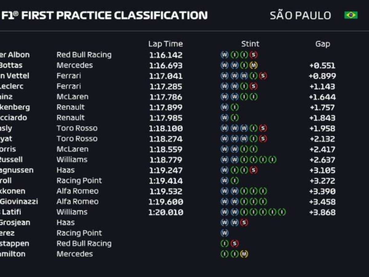 First on the timesheets, but last back to the pits for Albon 💥#BrazilGP 🇧🇷 #F1 pic.twitter.com/NSilJ1bsfQ