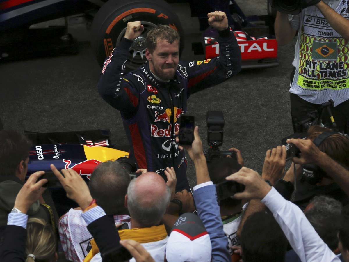 Sebastian Vettel fechou a temporada de 2013 com mais uma vitória, no GP do Brasil, igualando o recorde de nove triunfos seguidos de Alberto Ascari