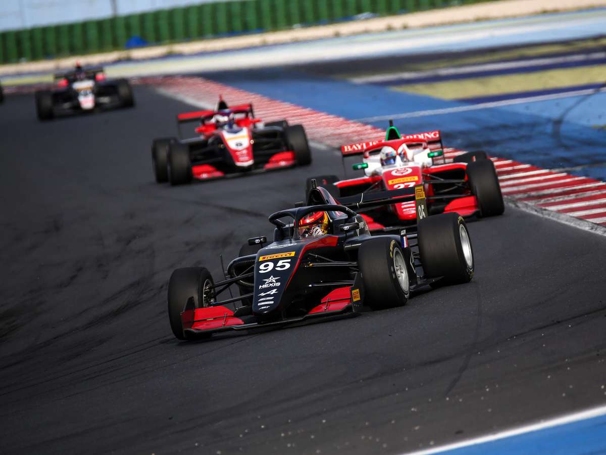 Matteo De Palo, vencedor da primeira corrida e piloto da Trident, completou o pódio em terceiro, resistindo ao ataque de Enzo Deligny (R-ace GP).