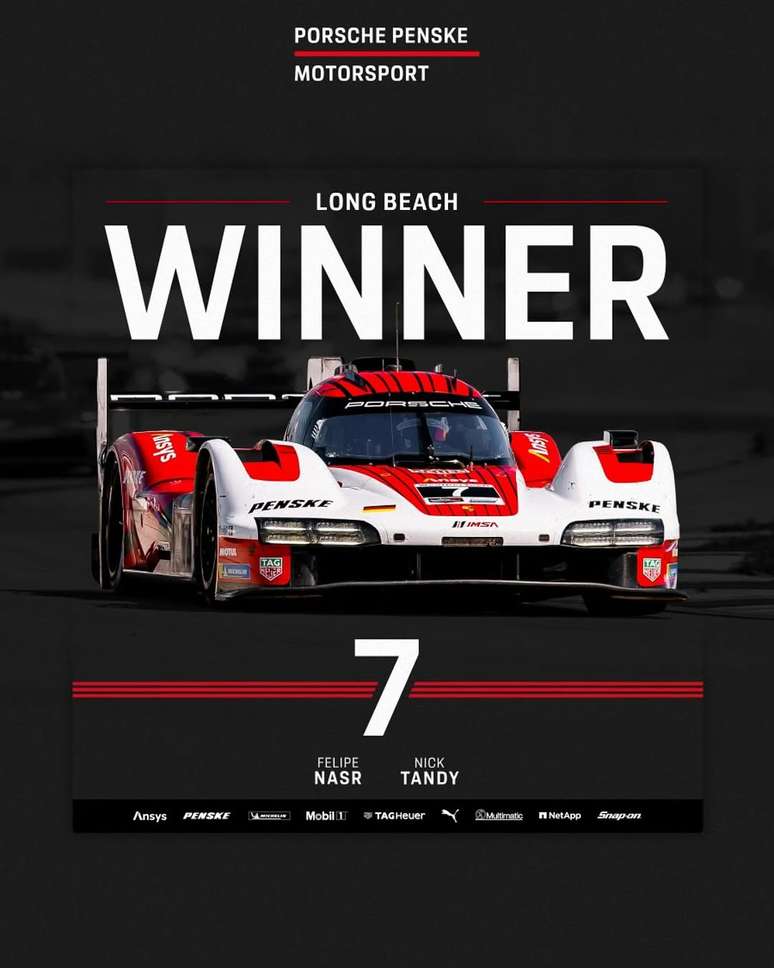 A dupla Felipe Nasr e Nick Tandy segue imbatível na temporada 2025 do IMSA WeatherTech SportsCar Championship. Na tarde deste sábado (12), eles conduziram o Porsche 963 #7 da Porsche Penske Motorsport à vitória em Long Beach, ampliando a liderança na classe GTP — agora com 123 pontos de vantagem. A corrida de 100 minutos terminou com um pódio 1-2 da equipe, com o Porsche #6 de Mathieu Jaminet e Matt Campbell cruzando a linha de chegada apenas três segundos atrás.