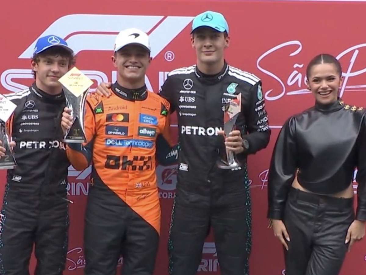 A atriz e apresentadora Maísa Silva foi uma das grandes surpresas deste sábado (8) no Autódromo de Interlagos. A convite da organização do GP de São Paulo, ela participou da cerimônia de pódio da corrida sprint da Fórmula 1 e entregou os troféus aos três primeiros colocados — Lando Norris, Kimi Antonelli e George Russell.