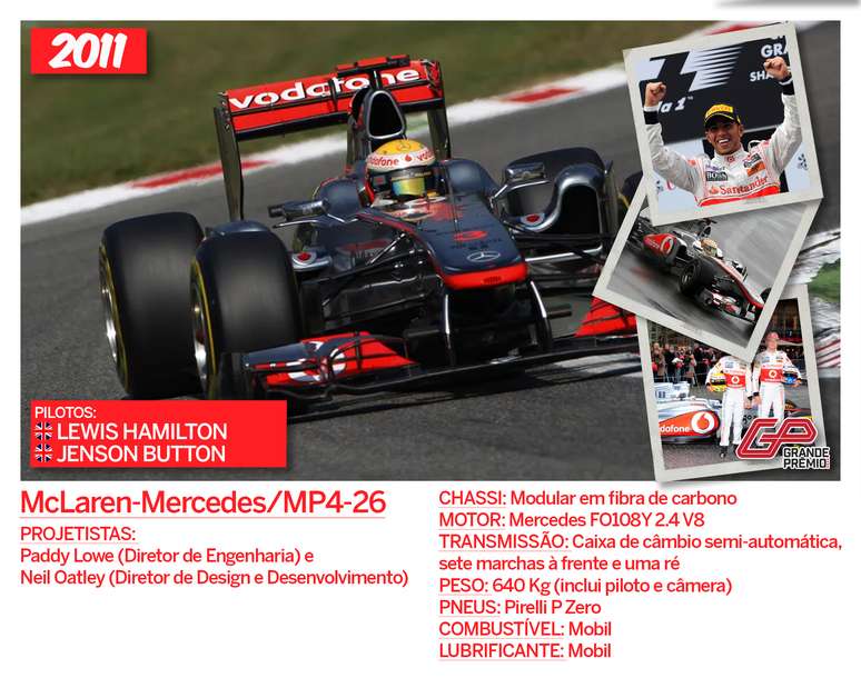 Apesar do domínio da Red Bull, a McLaren construiu um carro eficiente para Lewis Hamilton e Jenson Button. Ambos venceram naquele ano, mas não foi o suficiente para bater os austríacos. De novo, a equipe inglesa foi vice-campeã