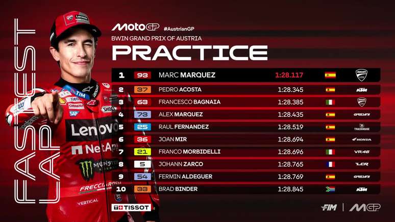 MotoGP: Marc Márquez é o mais rápido em treino classificatório na Aústria