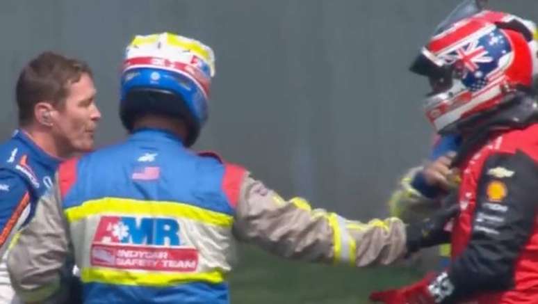 O sábado está quente na Fórmula Indy. O segundo treino livre para o GP de Elkhart Lake foi marcado por uma cena em que dois pilotos quase vieram às vias de fato. Enfurecido pela batida, Will Power empurrou Scott Dixon, mas os dois foram contidos por membros das equipes que removiam os veículos da pista.