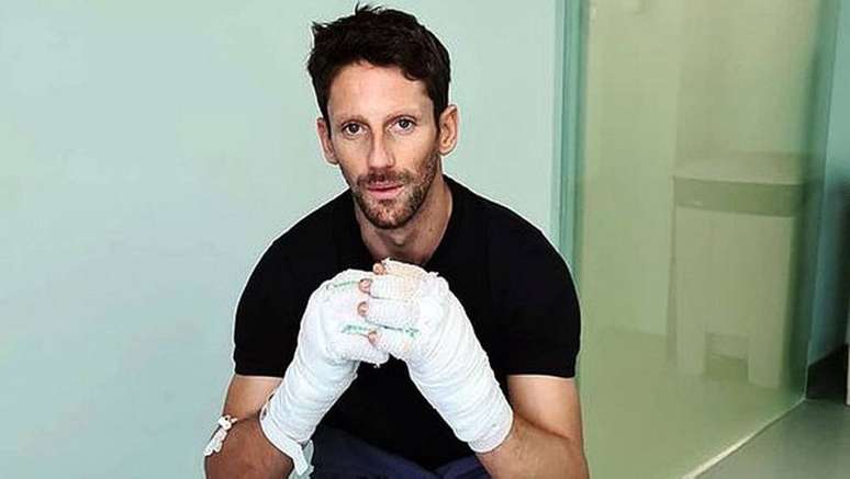 Grosjean está tratando queimaduras de segundo grau nas mãos após a forte batida que sofreu ainda na primeira volta da corrida no circuito em Sakhir. O piloto de 34 anos acertou o guard-rail a mais de 200 km/h e com impacto de 53G de força.