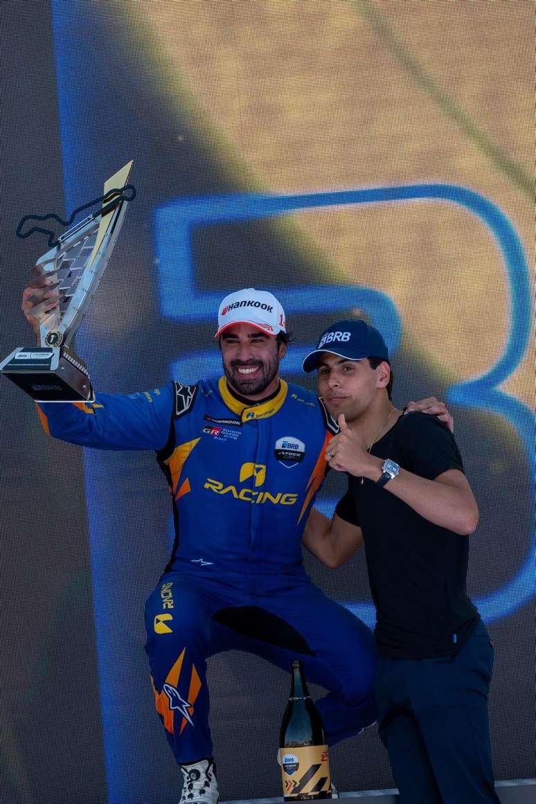 Ramos recebeu o troféu de vencedor das mãos de Gabriel Bortoleto, piloto da Fórmula 1 que está de férias no Brasil e deu uma volta de exibição no circuito antes da prova.