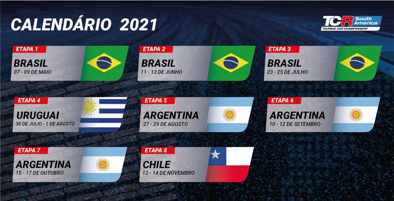 A mais nova categoria do esporte a motor na América do Sul , o TCR Sul-Americano, que começa em 2021, teve o calendário da primeira temporada definido e anunciado nesta quarta-feira (23).