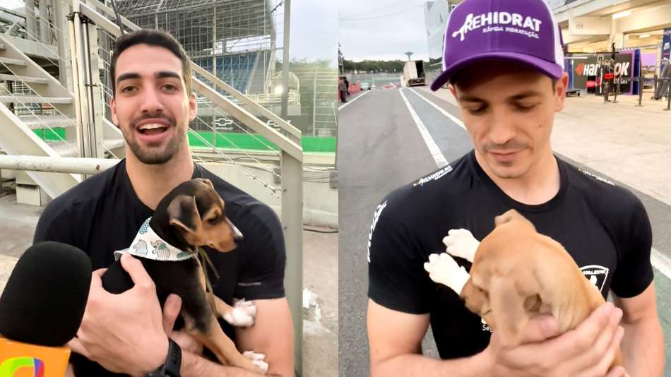 A ação promovida pela Cobasi ocorreu nesta quinta-feira, 23, no Autódromo de Interlagos durante a abertura da terceira etapa da temporada 2026. Guilherme Salas arriscou dar um nome para um caramelo e escolheu 'Joãozinho' em meio a risadas. Já o piloto André Moraes, que adotou um pet, decidiu dar o nome 'Stock' em homenagem à categoria de corrida. Reprodução/Raul Godoy