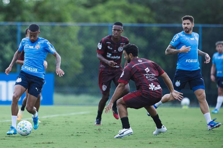 De olho no confronto contra o São Paulo, marcado para as 16h (de Brasília) do próximo domingo (3), o Bahia realizou um jogo-treino nesta terça-feira (28), no Centro de Treinamento Evaristo de Macedo.