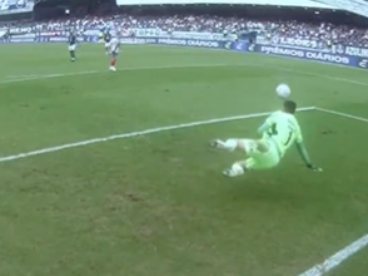 Momento em que o Ronaldo goleiro do Bahia quebra o braço.
