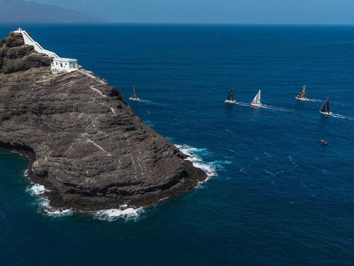 Antes da partida, as equipes registraram a foto oficial diante da égide de Cesária Évora, ícone da música cabo-verdiana. De acordo com o meteorologista Christian Dumard, o início da navegação será marcado por ventos leves de leste e a travessia da zona de convergência intertropical (Doldrums), com tempestades alternadas por períodos de calmaria.