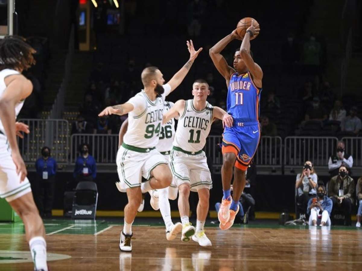 O Oklahoma City Thunder encerrou uma sequência de 14 derrotas ao superar o Boston Celtics na noite de terça-feira na NBA. A equipe, que ocupa o penúltimo lugar na conferência Oeste e, declaradamente, está no tank (deixando de escalar jogadores importantes para ter mais chances de ficar com boa posição no draft), teve Lu Dort e Darius Bazley como principais cestinhas, com 24 e 21 pontos, respectivamente. Pelo lado do Celtics, que corre o risco de disputar a repescagem, não contou com Jayson Tatum e Kemba Walker, poupados. Jaylen Brown anotou 39 pontos, mas sofreu uma queda no fim, que pode ter machucado a mão esquerda.