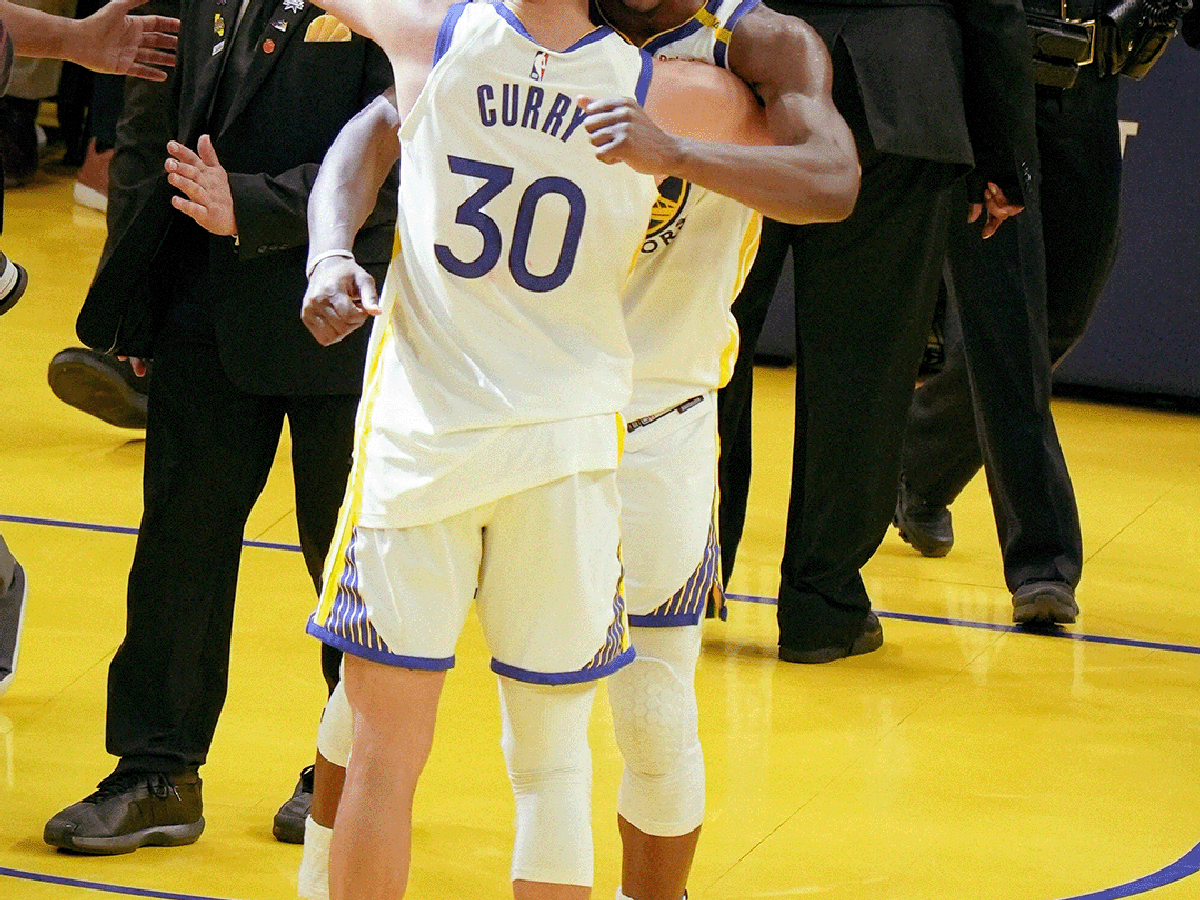 Ele foi ajudado por Buddy Hield e Jonathan Kuminga para conseguir caminhar pelo túnel até uma cadeira de rodas, que o aguardava na entrada do vestiário.