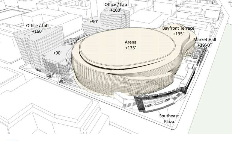 O projeto divulgado pela equipe de Oakland, porém, fez sucesso não somente por causa de alguma inovação na infraestrutura. E sim por causa de seu formato um tanto quanto esquisito. As primeiras imagens do ginásio que deve se chamar Mission Bay Arena mostram que ele pode possuir extrema semelhança com um vaso sanitário.
