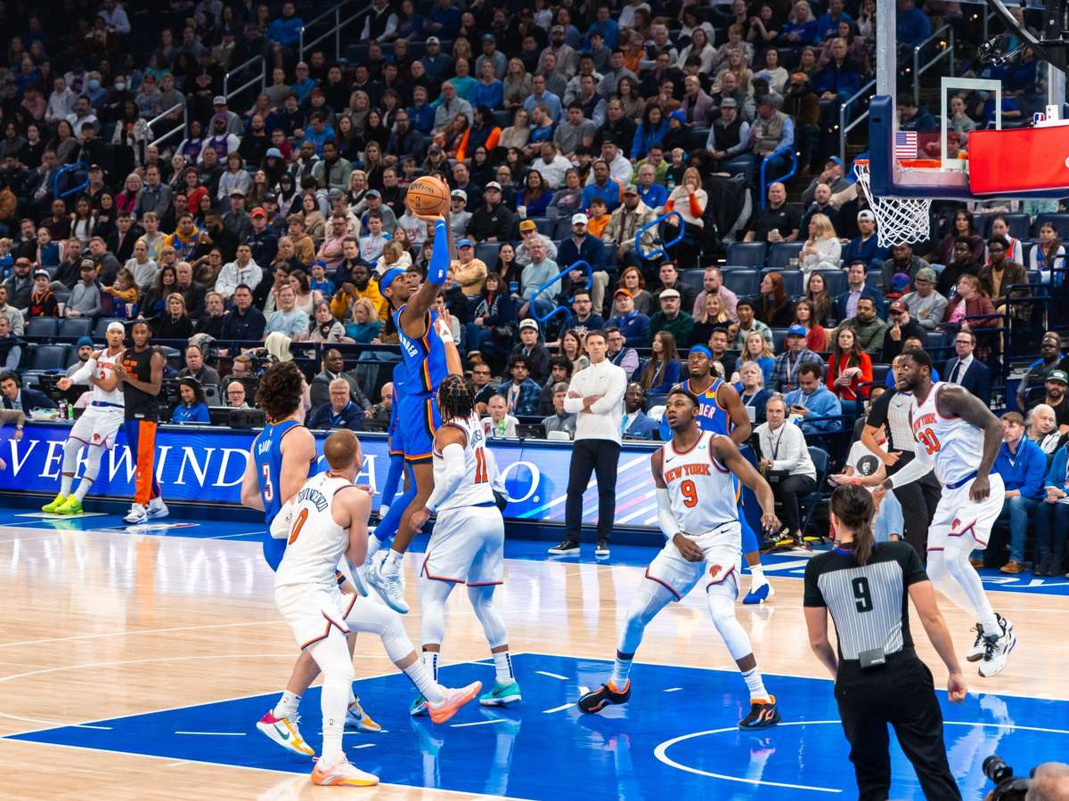 O Thunder venceu mais uma e parece cada vez mais pronto para competir contra os melhores na NBA. Com show da dupla Shai Gilgeous-Alexander e Jalen Williams, ambos marcaram 36 pontos, sendo o recorde de pontuação da carreira do jovem ala. Apesar de liderar a partida pela maior parte do tempo, o OKC não abiru uma grande vantagem, até o último quarto. Quando os Knicks esboçaram uma reação, diminuindo a vantagem para cinco pontos, o Thunder ligou o alerta e não deu mais chances para a equipe de New York. Um dos destaques desso incrível último quarto do Thunder foi Chet Holmgren, com três tocos só no último período e uma defesa de elite para acabar com as chances do adversário.