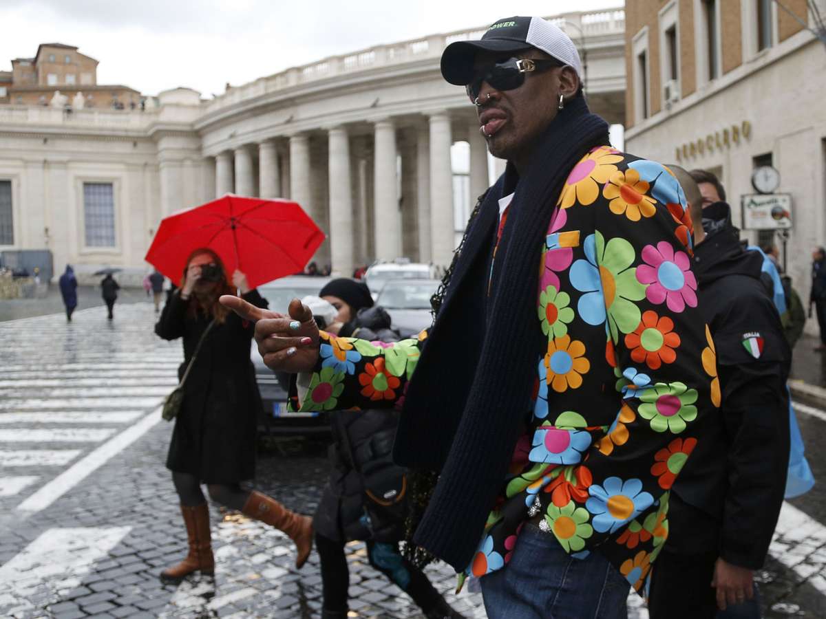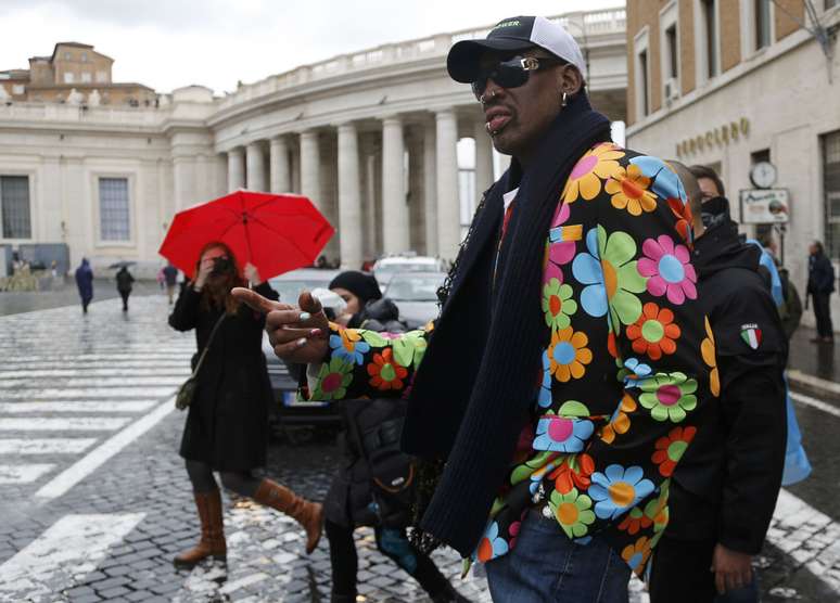 Após visitar no fim de fevereiro a Coreia do Norte, onde foi recebido pelo líder local Kim Jong-Um, o ex-jogador de basquete Dennis Rodman está em Roma. O americano supostamente pretende ajudar o cardeal ganês Peter Tukson a se tornar o primeiro papa negro da história.
