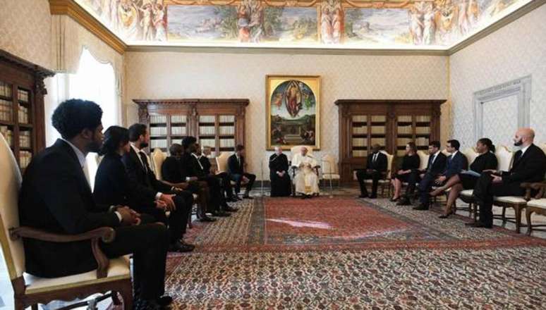 O Papa Francisco recebeu nesta segunda-feira cinco jogadores da NBA, principal liga de basquete do mundo, para discutir a atuação dos atletas contra o racismo. Além dos atletas, membros da Associação Nacional de Jogadores de Basquete (NBPA, em inglês) também estiveram na reunião do Vaticano.