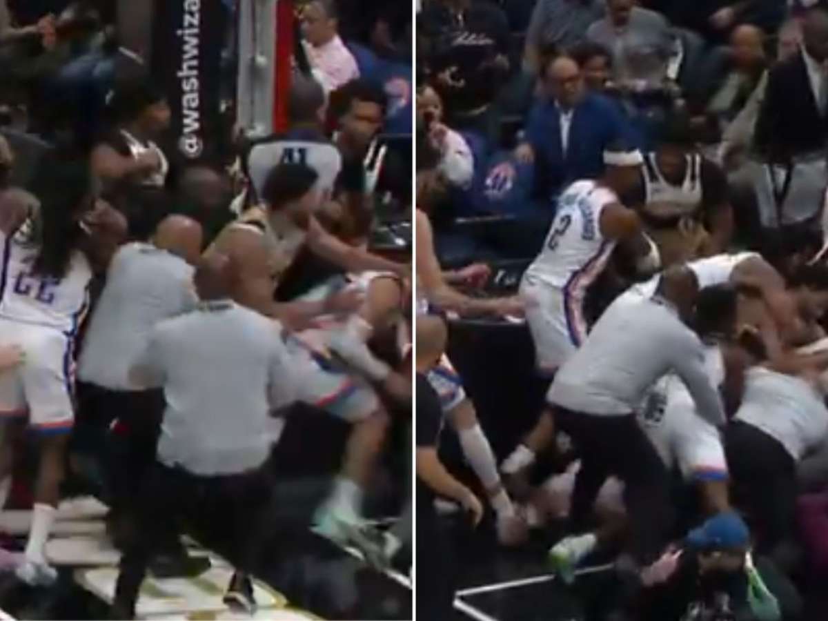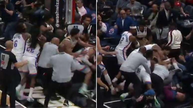 Uma briga generalizada entre os jogadores em plena quadra da Capital One Arena, na noite deste sábado, marcou a vitória do Oklahoma City Thunder sobre o Washington Wizards pelo placar de 132 a 111, em jogo válido pela temporada regular da NBA. Por causa da confusão durante a partida, quatro atletas foram expulsos: Justin Chapagnie, da equipe anfitriã, e Ajay Mitchell, Jaylin Williams e Cason Wallace, da franquia de Oklahoma.