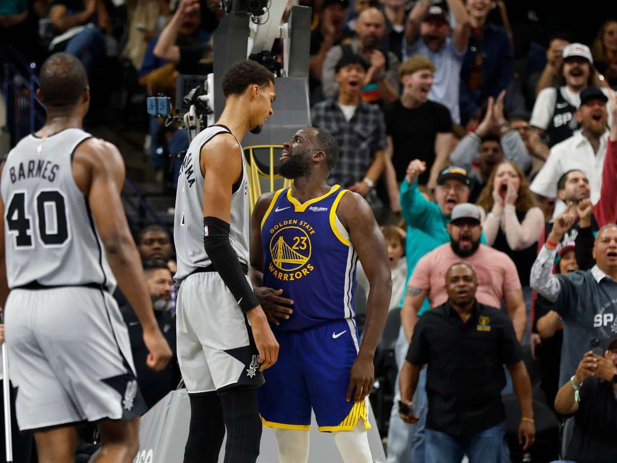 - Victor Wembanyama e Draymond Green se empurrando antes de cobrarem o lateral