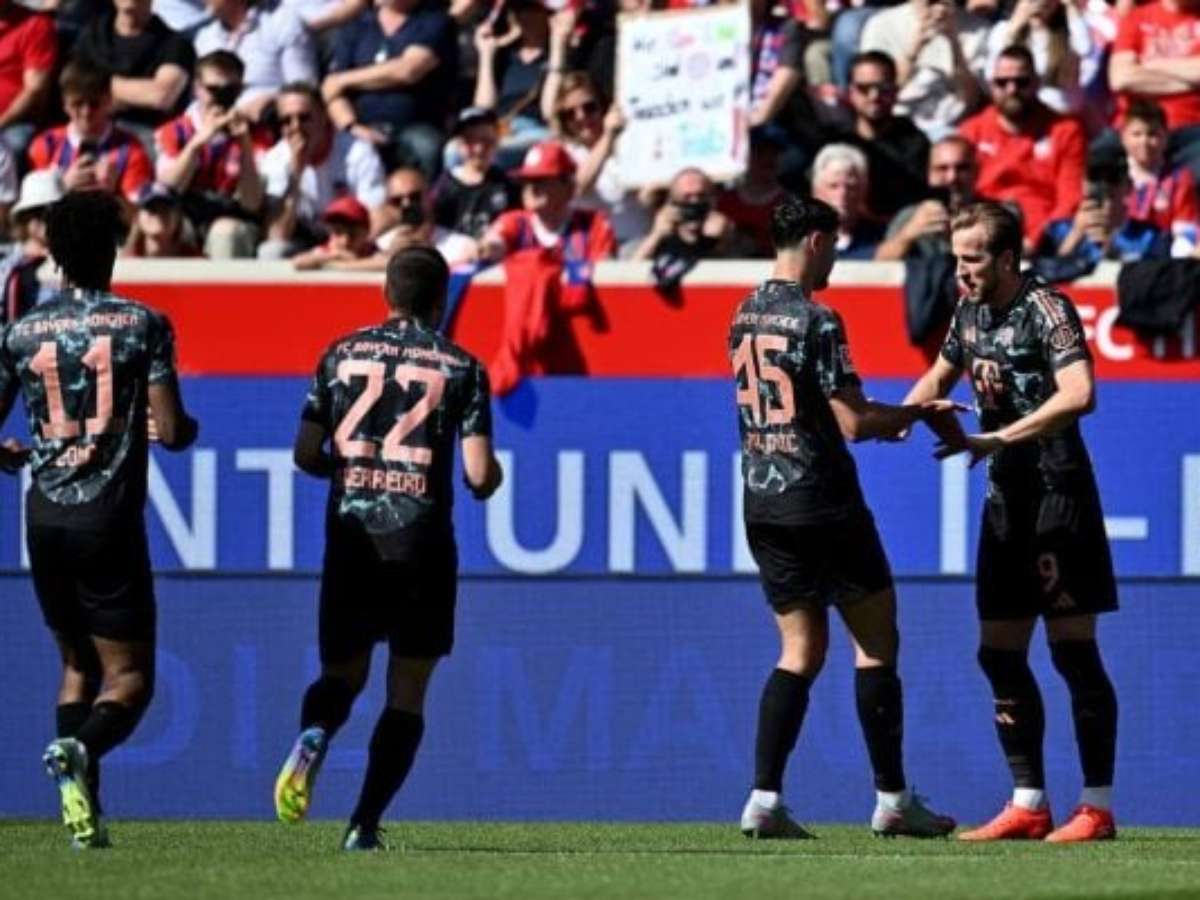 Neste sábado (19), o Bayern de Munique visitou o Heidenheim, na Voith Arena, pela 30ª rodada do Alemão. Mas não teve dificuldade alguma para arrasar o rival, mesmo fora de casa. Afinal, goleou por 4 a 0. Para se ter ideia, ainda no primeiro tempo abriu 3 a 0. Os gols foram de Kane, Laimer e Coman. Na etapa final, Kimmich ampliou.