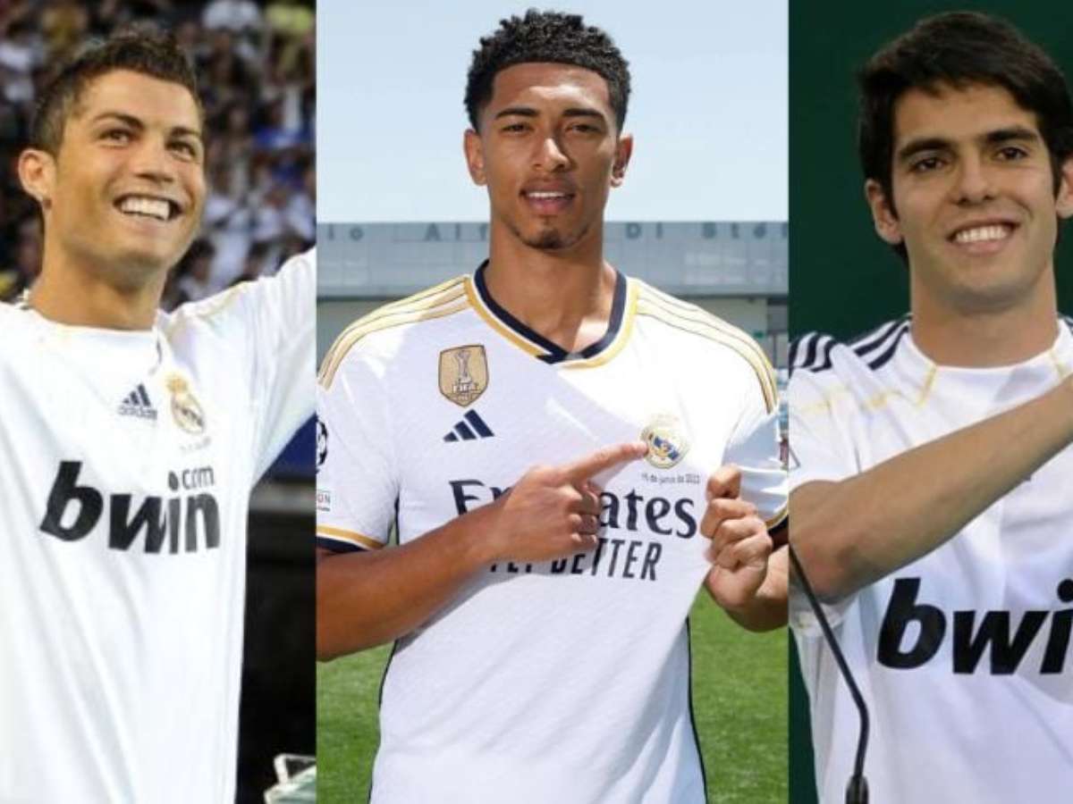 Jude Bellingham é a principal contratação do Real Madrid para a próxima temporada. O volante de 19 anos se tornou o segundo jogador mais caro da história do clube merengue, que pagou 103 milhões de euros para tirá-lo do Borussia Dortmund. Dessa maneira, o volante inglês ultrapassou Cristiano Ronaldo na lista dos 10 maiores investimentos do clube da capital espanhola. Confira o ranking a seguir.