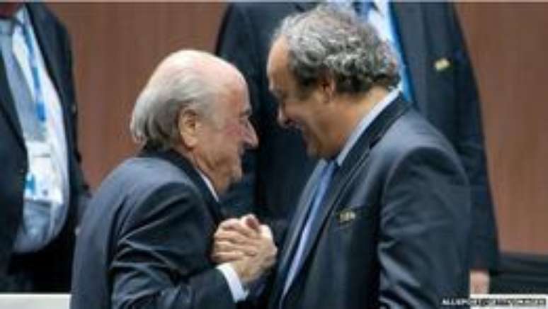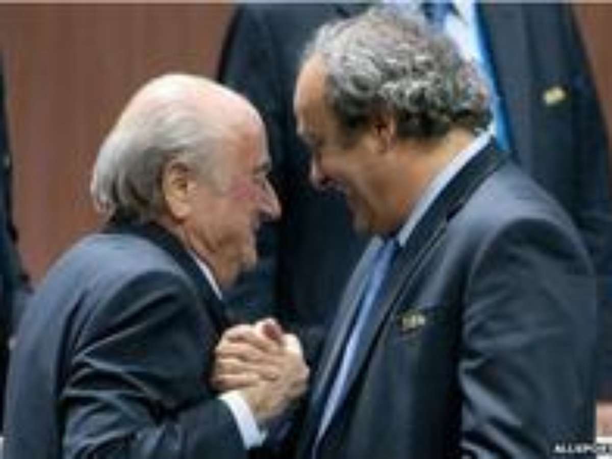 O presidente da Uefa, Michel Platini (dir.) sugeriu que os times europeus podem boicotar a Copa do Mundo se Blatter continua na presidência da Fifa