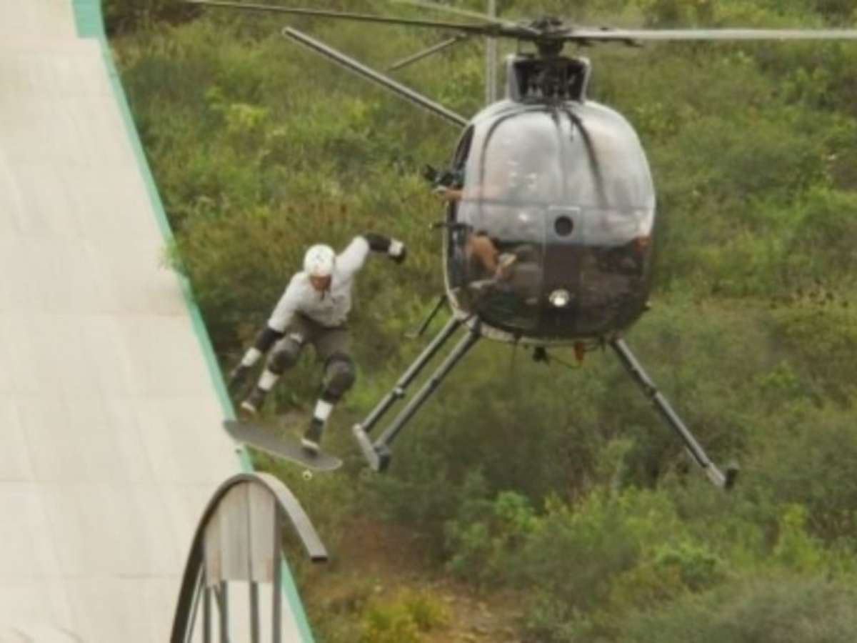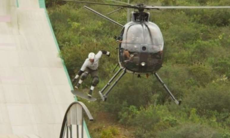"Foi um dos dias mais divertidos da minha vida. Eu queria ir muito mais vezes e dar muito mais manobras. Mas chegou uma hora que o povo da produção falou para terminar: acabou, chega! Eu aterrisava lá embaixo, o helicóptero me pegava e trazia de volta. Eu saltei umas dez vezes e na megarrampa foram umas sete. Montei sete skates e perdi todos", relembra, sem esquecer de ressaltar que tudo foi feito com muita segurança.