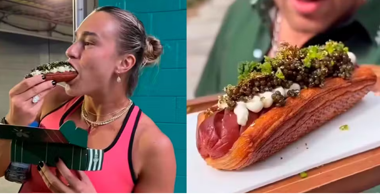"Precisávamos surpreender Aryna Sabalenka após a vitória dela, por que quem não precisa de um hot dog de wagyu com um pouco de caviar por cima?", publicou o perfil.