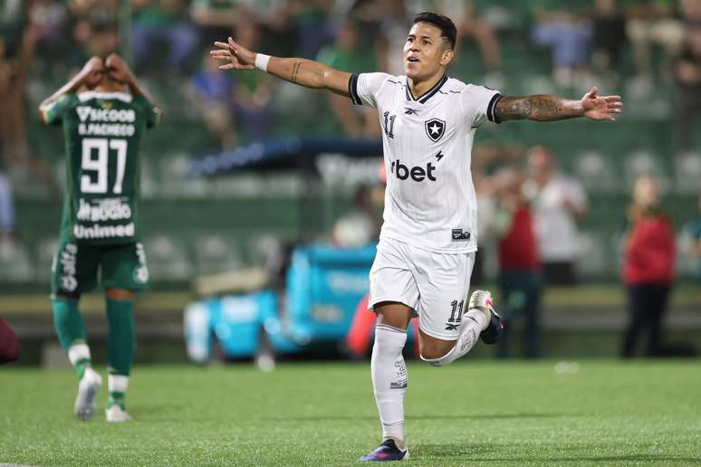 Matheus Martins celebra gol na vitória do Botafogo contra a Chapecoense