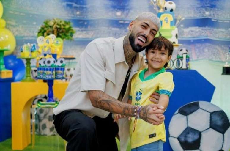 O tema da celebração foi a Seleção Brasileira. Havia, inclusive, uma estátua do Neymar, ídolo do filho do beque argentino do Mais Tradicional. Empolgado, Barboza fez vários registros com o filho e os convidados.