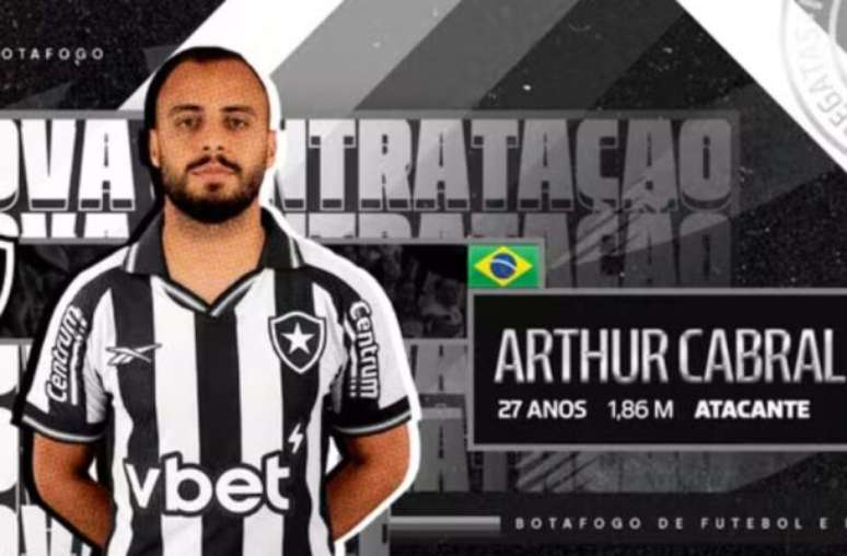 O Botafogo anunciou, oficialmentea na noite deste domingo, 8/6, a contratação do atacante Arthur Cabral. Ele chega para assumir a vaga de Igor Jesus, contratado pelo Nottingham Forest. Contudo, ambos defenderão o Glorioso na disputa do Mundial de Clubes.