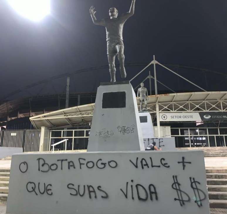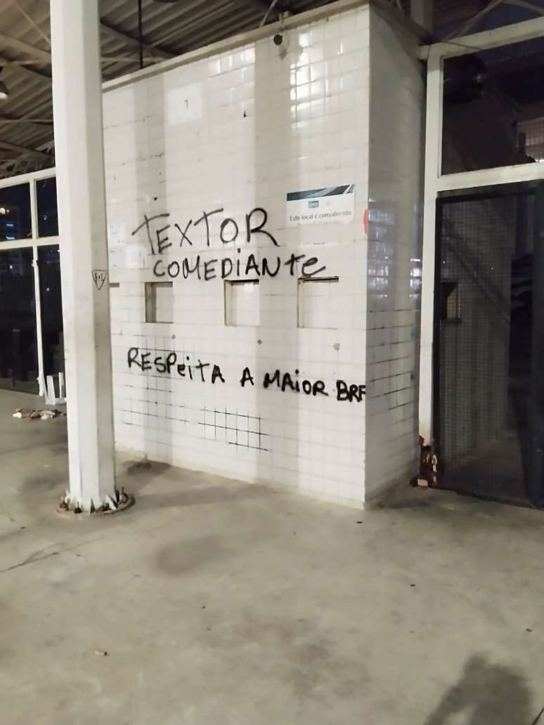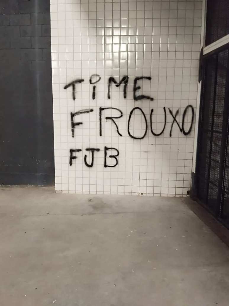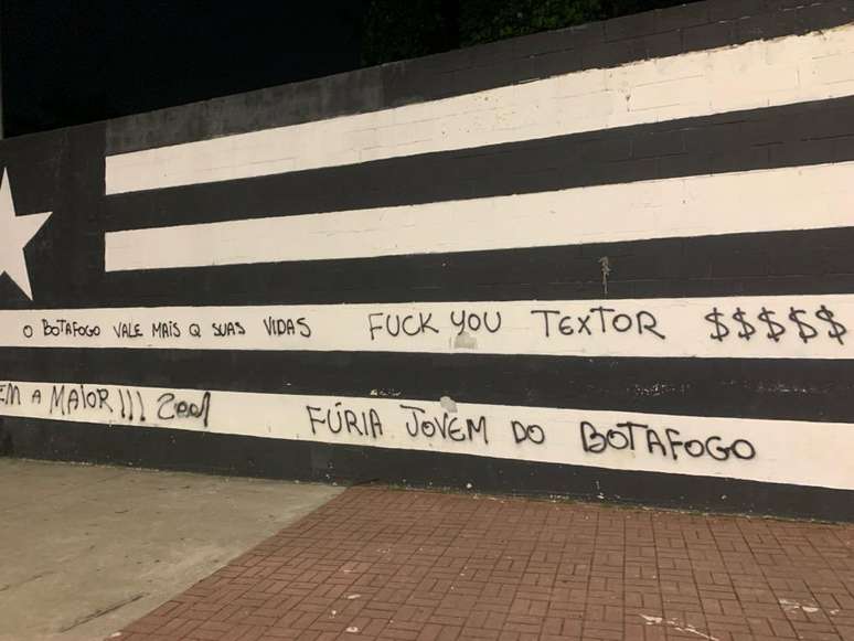 Além da troca de farpas pelas redes sociais, os muros do Estádio Nilton Santos amanheceram pichados neste sábado e com ameaças. As mensagens são contra o empresário americano John Textor, contra a diretoria e contra os jogadores do Botafogo.
