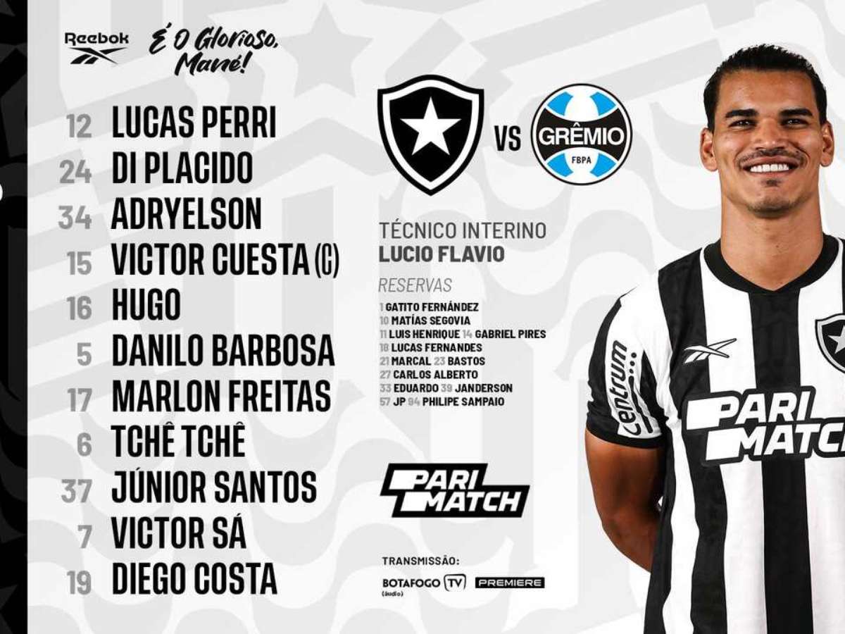 O Botafogo está escalado para enfrentar o Grêmio nesta quinta-feira (9/11), às 20h, em São Januário, pela 33ª rodada do Campeonato Brasileiro. O técnico Lucio Flavio montou o time com três volantes e mudanças na lateral esquerda e no ataque.