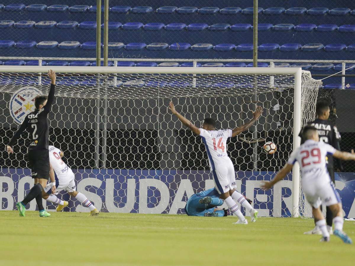 Aos nove minutos, o Nacional marcou o primeiro gol. Após cruzamento na área, Danilo Santacruz matou no peito, e de bicicleta, mandou no canto direito de Saulo. Um golaço que fez vibrar a pequena torcida paraguaia.