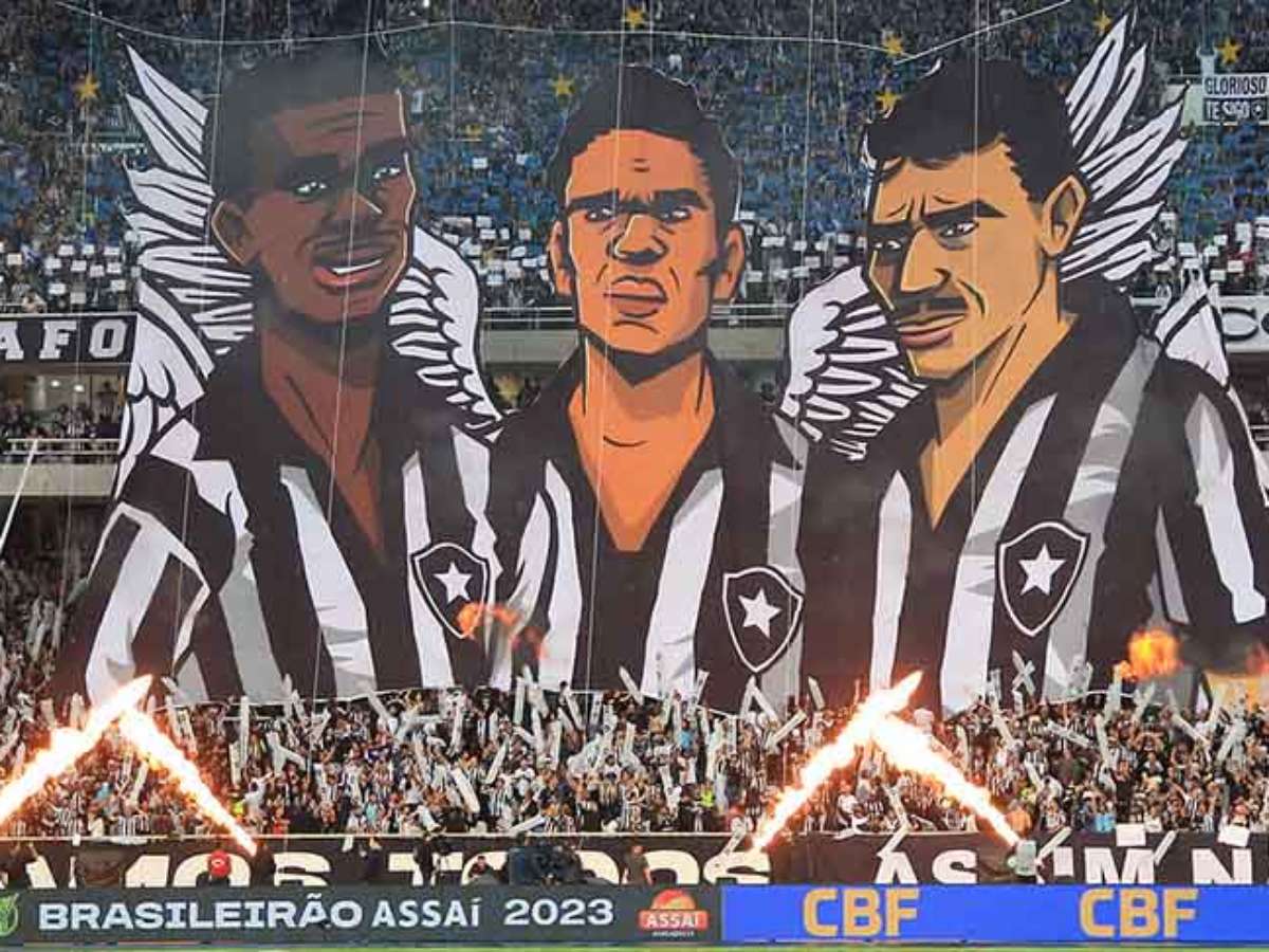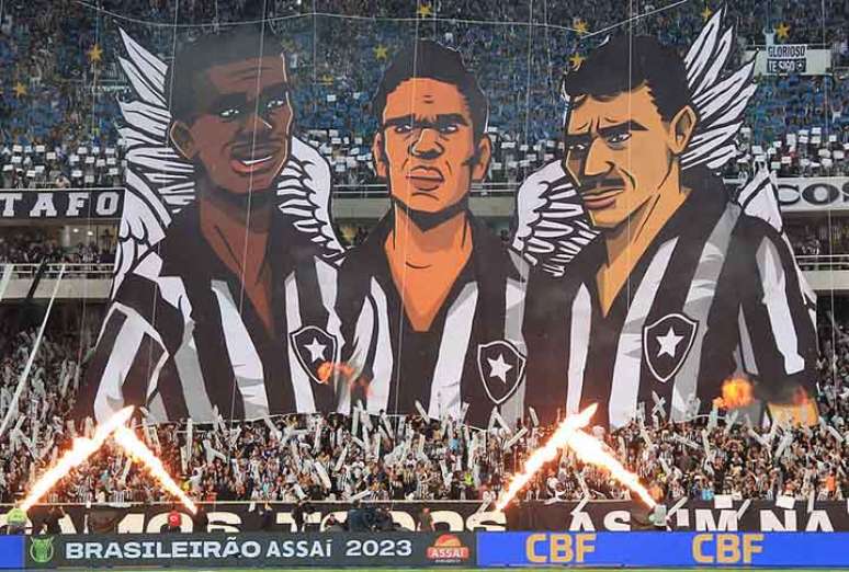 Nos últimos meses, a torcida do Botafogo vem dando um show à altura dos resultados do time. Antes da vitória sobre o Bahia, mais um mosaico, ou bandeirão 3D, emergiu da multidão. Desta vez, homenageou três craques do passado do clube: Didi, Garrincha e Nilton Santos, que, aliás, dá nome ao estádio. Via redes sociais, o Glorioso fez questão de mostrar a imagem por ângulos diferentes.