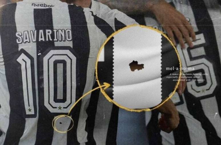 "12 jogos com essa mancha na camisa do Fogão e você não viu. O melanoma também se esconde. Faça um check-up de pele", postou o Botafogo.