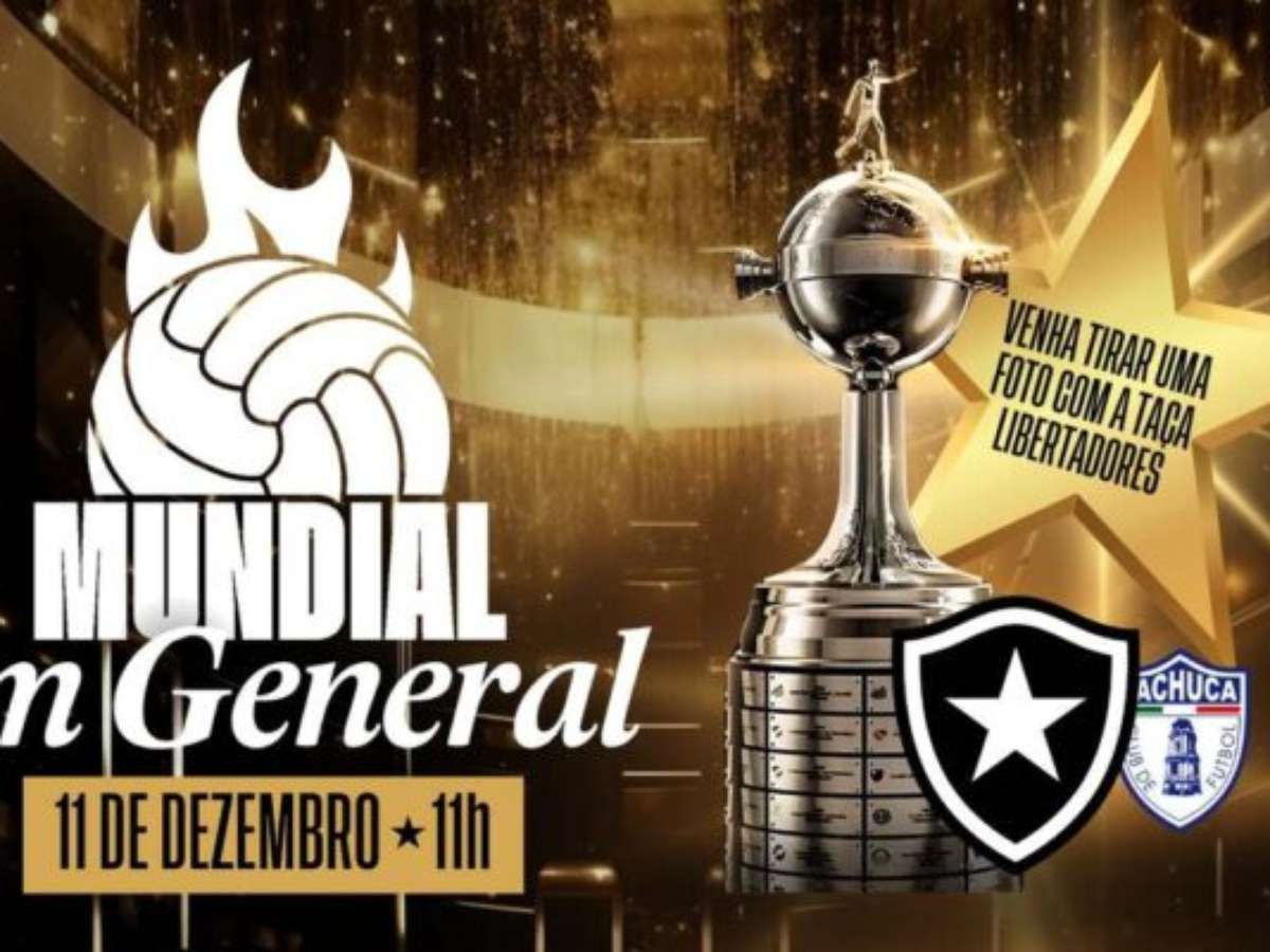 General Severiano vai ferver na próxima quarta-feira (11). Afinal, a sede alvinegra terá a transmissão de Botafogo x Pachuca (MEX), pela Copa Intercontinental, no evento "Mundial em General", que terá também a taça da Conmebol Libertadores exposta para os torcedores. Ou seja, é a chance de tirar a tão sonhada foto ao lado do troféu. Os ingressos são limitados (leia mais abaixo).