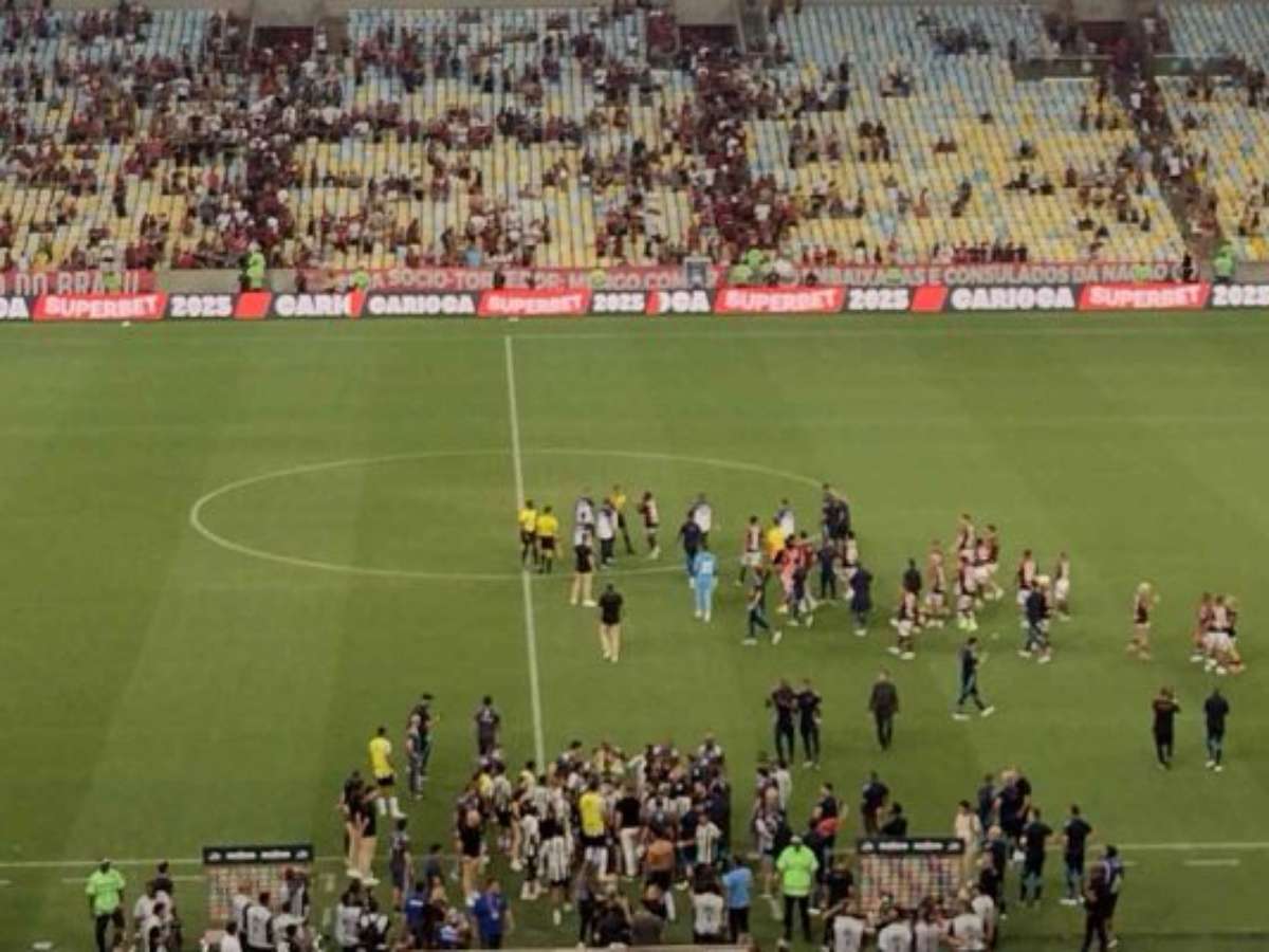 Diante disso, os jogadores do Flamengo ficaram esperando por pelo menos 10 minutos no gramado. Assim, os seguranças fizeram um cordão de isolamento para que a equipe rubro-negra pudesse ir para o vestiário. Segundo o árbitro, os atletas do Botafogo tentaram furar o bloqueio e destacou a violência. Além disso, frisou que os atletas do Fla não reagiram. No fim, Bruno Mota Correia diz que os mais violentos eram Alex Telles e Barboza.