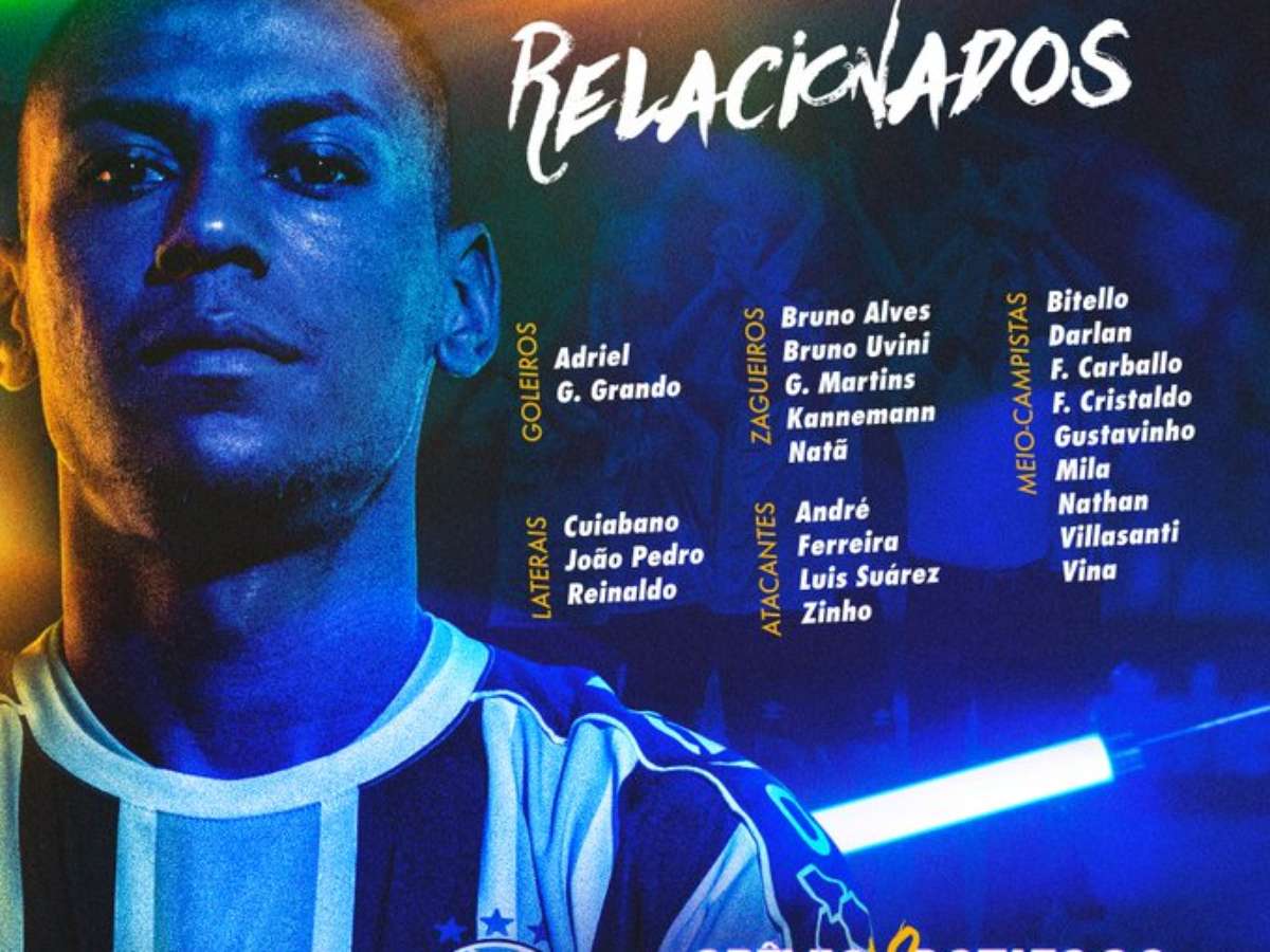Na lista completa para a disputa com o Glorioso estão: Adriel e Grando; Cuiabano, João Pedro e Reinaldo; Bruno Alves, Bruno Uvini, G.Martins, Kannemann e Natã; Bitello, Darlan, Carballlo, Cristaldo, Gustavinho, Mila, Nathan, Villasanti e Vina; André, Ferreira, Luís Suárez e Zinho.